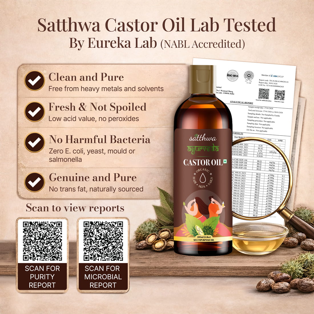 Castor oil is cold-pressed, free from parabens & mineral oil, and contains no added artificial fragrance or colour. It is hexane-free and uses no harmful chemicals during extraction.